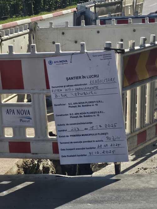 -înlocuire rețea apa si bransamente – Bd. Republicii tronson cuprins intre str. NicolaeTitulescu si str Luminii, lucrare de Investitii de Inlocuiri obligatie Concesionar.